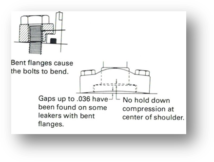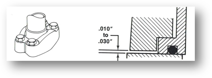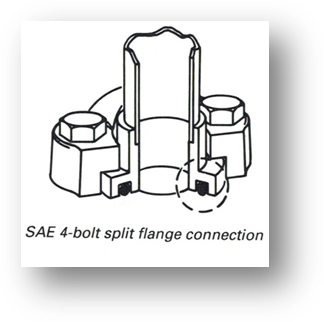 How it Works: The SAE 4-bolt split flange connection is a face seal. The flanged head which contains an O-Ring seal must fit squarely against the mating surface and be held there with even tension on all bolts. The flanged head protrudes past the split flange clamps by .010 to .030 inch. This is to ensure that the flanged head will make contact with the mating accessory surface, compressing the O-Ring to form the seal.