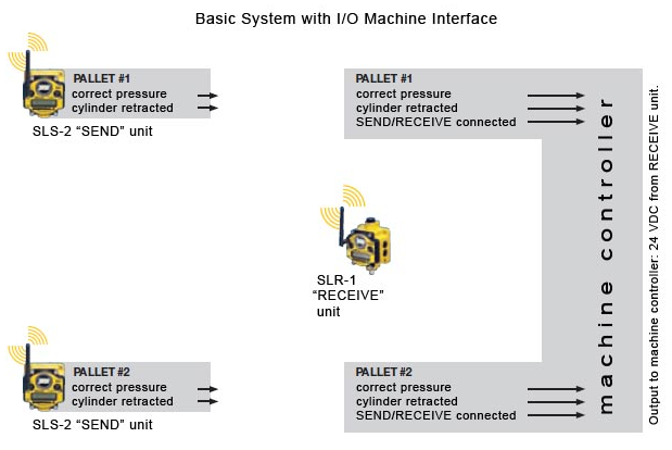 - Fixture mounted “SEND” unit uses radio communication to monitor pressure and/or clamp position