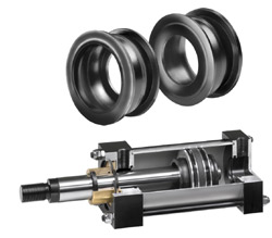 Pressure - energized, wear compensating U-cup rod seal for positive sealing.Barrel seals