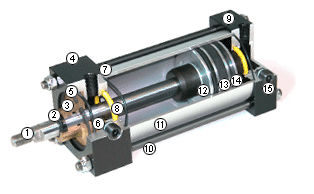 Aluminum piston is threaded to rod, permanently locked with aerobic adhesive and secured with lock nut. Optional magnet installed under wear ring.Wear Ring